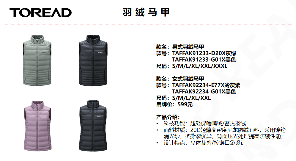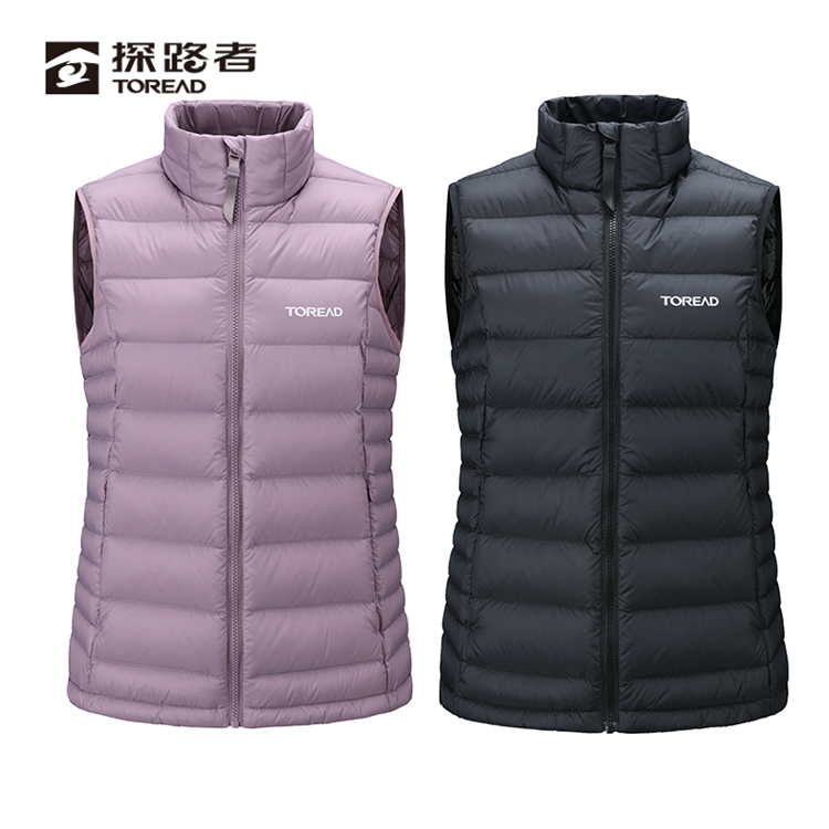 探路者 女式羽絨馬甲 羽絨馬甲 秋冬新款女戶外透氣保暖防潑水 TAFFAK92234-E77X冷灰紫  TAFFAK92234-G01X黑色